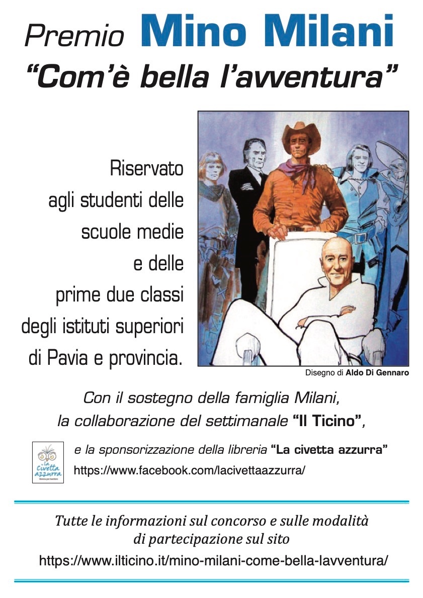 E’ stato indetto il concorso “Mino Milani – Com’è bella l’avventura”. A organizzarlo è il Comitato promotore del concorso stesso, composto da tre giornalisti (Giorgio Bertoni, Massimo Esposti ed Elio Silva), che alla fine degli Anni ’70 hanno mosso i primi passi nella professione sotto l’ala e l’insegnamento di Mino Milani alla “Provincia pavese”. E’ sostenuto dalla famiglia Milani, dall’Ufficio Scolastico Provinciale, con il supporto organizzativo del settimanale diocesano pavese “il Ticino”. Il concorso è rivolto agli studenti delle terze medie e dei primi due anni delle scuole superiori della provincia di Pavia. Ha come finalità lo stimolo della fantasia e dell’inventiva dei giovani concorrenti. Consiste in un racconto d’avventura a tema libero nella forma preferita: scritta o multimediale. I racconti non dovranno superare 10mila battute, i video 5 minuti, le foto con audio 4 minuti, gli audio (tipo podcast) 4 minuti, le foto con testo 3 minuti. Dovranno essere accompagnati dai nomi, dai recapiti telefonici, dalle classi di appartenenza dei concorrenti.