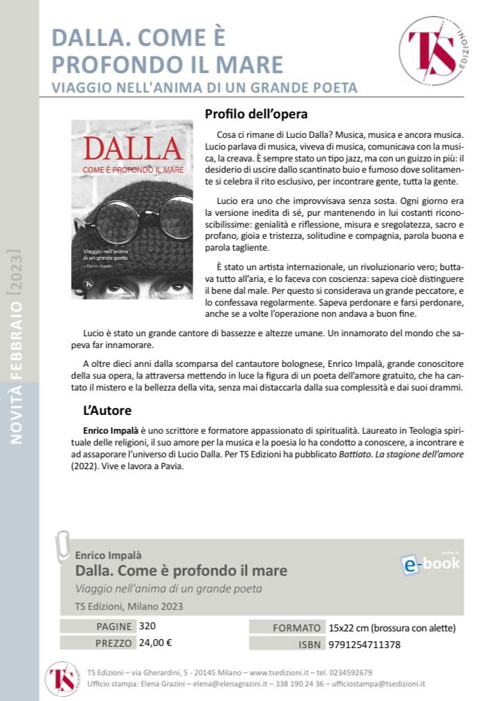 Dalla. Come è profondo il mare Il nostro collega Enrico Impalà presenta il suo ultimo lavoro su Lucio Dalla Condividi: Condividi su X (Si apre in una nuova finestra) X Condividi su Facebook (Si apre in una nuova finestra) Facebook Mi piace Caricamento... Correlati Lascia un commento Cancella risposta Δ