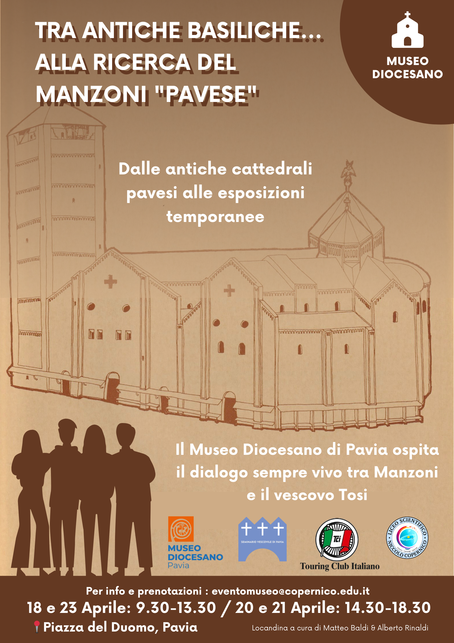 La classe 2H del Liceo Scientifico “N. Copernico” di Pavia invita gli studenti delle Scuole Secondarie di Primo e Secondo Grado di Pavia all’evento che si svolgerà nelle mattine di giovedì 18 aprile 2024 e martedì 23 aprile 2024, dalle ore 9.30 alle ore 13.30, negli spazi del Museo Diocesano di Pavia: Tra Antiche Basiliche…alla ricerca del Manzoni “pavese”.
