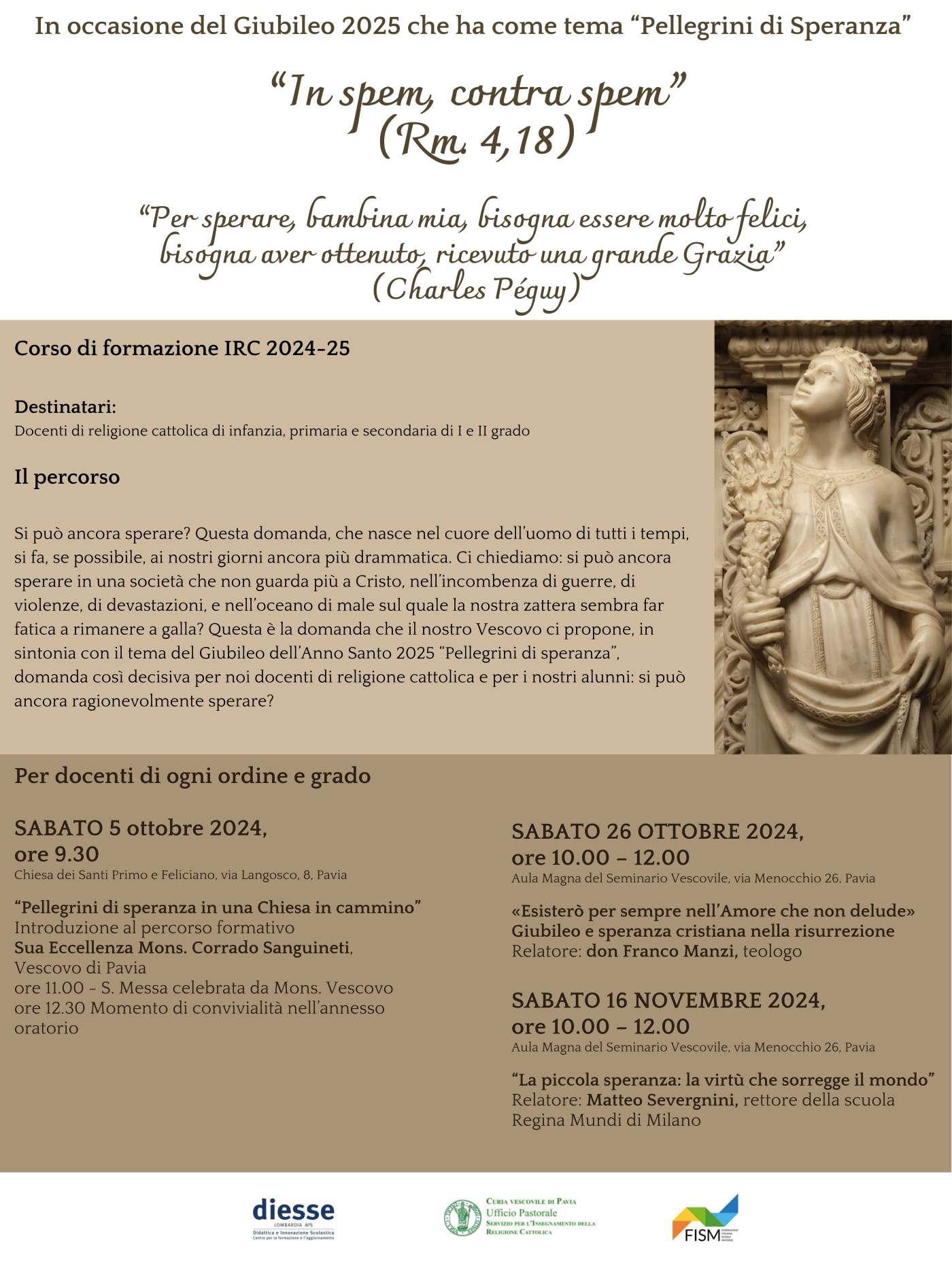 Questa è la domanda che il nostro Vescovo ci propone, in sintonia con il tema del Giubileo dell’Anno Santo 2025 “Pellegrini di speranza”, domanda così decisiva per noi docenti di religione cattolica e per i nostri alunni: si può ancora ragionevolmente sperare?