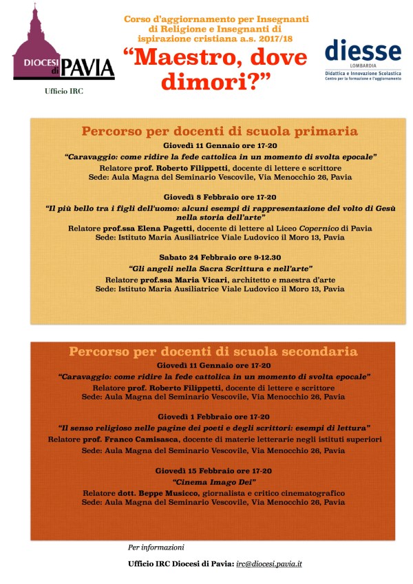Dopo il primo incontro di Novembre con Mons.Vescovo e il prof. Incampo, inizia il percorso differenziato per ordini di scuola. Qui puoi scaricare il programma e la locandina